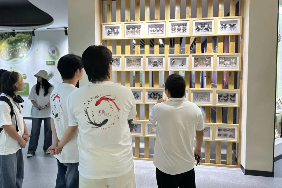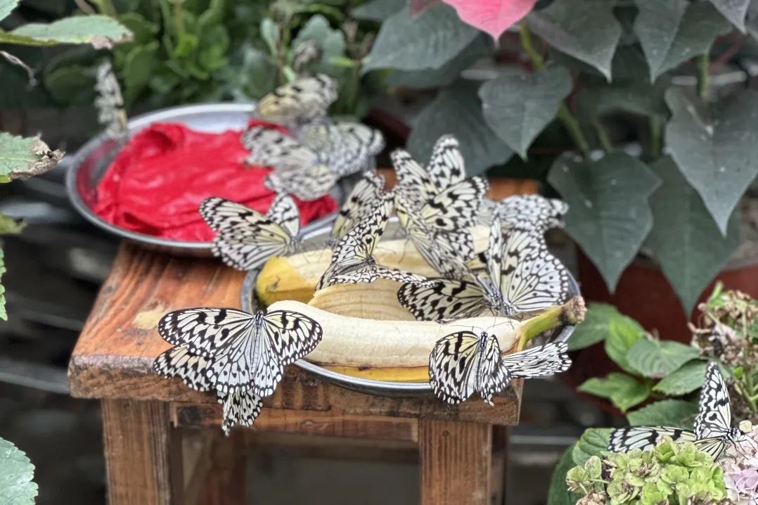 马鞍底蝴蝶文化馆中,数百件珍稀蝴蝶标本揭示着此地作为 “世界蝴蝶谷” 的生态价值。在生态模拟饲养园,湿热的环境里,万千蝴蝶穿梭于蕨类植物间,柑橘凤蝶偶尔停驻肩头,阳光透过穹顶洒下,蛱蝶吸食果实、凤蝶探取花蜜,让成员们直观感受生物多样性的魅力。