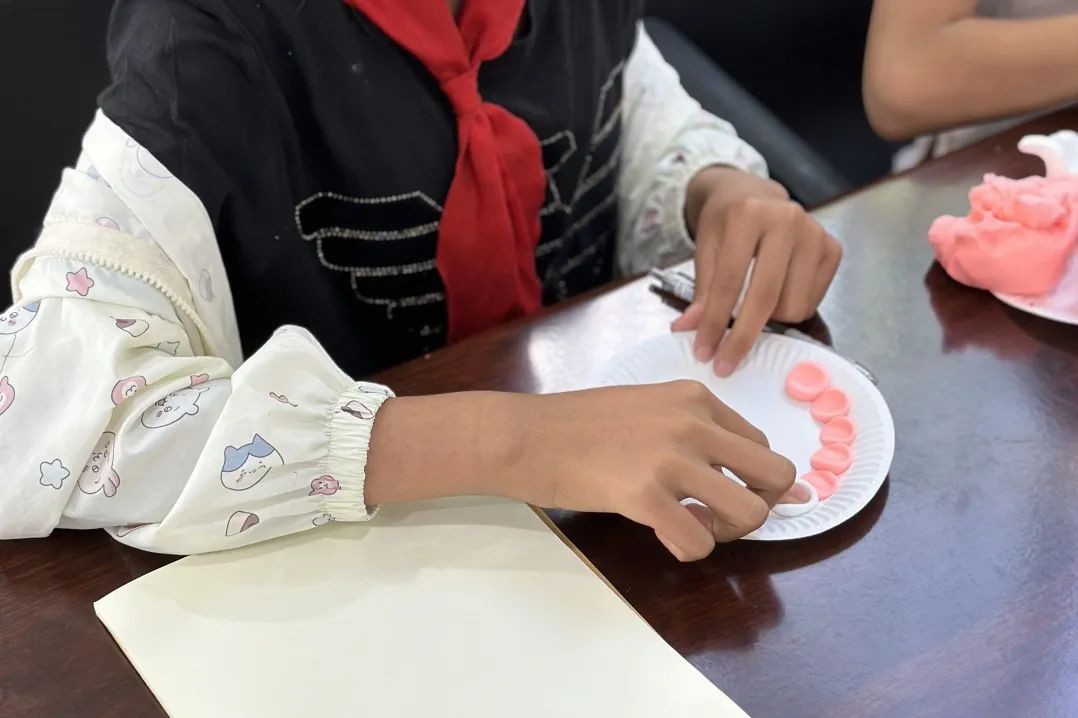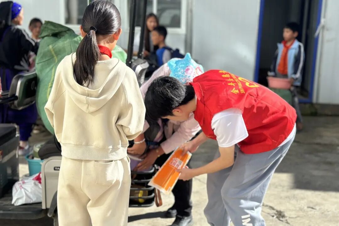 营盘乡中心小学内,团队面向60位小学生开展公益小课堂:石头画、超轻粘土捏制的情绪脸谱在孩子们手中诞生,孩子们珍惜学习机会,勇于互动。放学时,成员们在校门口协助疏导交通,帮家长搬运行李,夕阳下的身影,成为校园里温暖的风景。