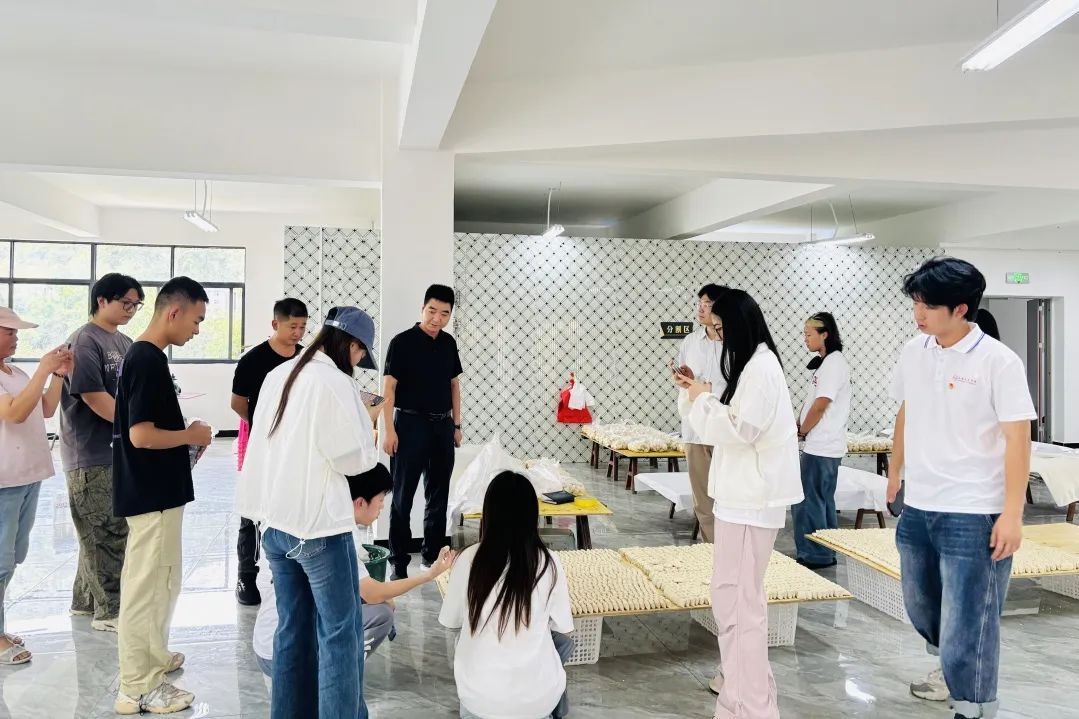 营盘乡的 “小豆腐产业” 展现着乡村转型的智慧。在乡党委书记冷易峰带领下,团队走访罗戈塘村加工车间,了解泡豆、磨浆与过滤、煮浆点卤、包豆腐、阴干成型等融合传统与现代技术的工序。虽部分作坊仍依赖线下销售,但已形成较完整产业链,为乡村产业振兴提供样本。