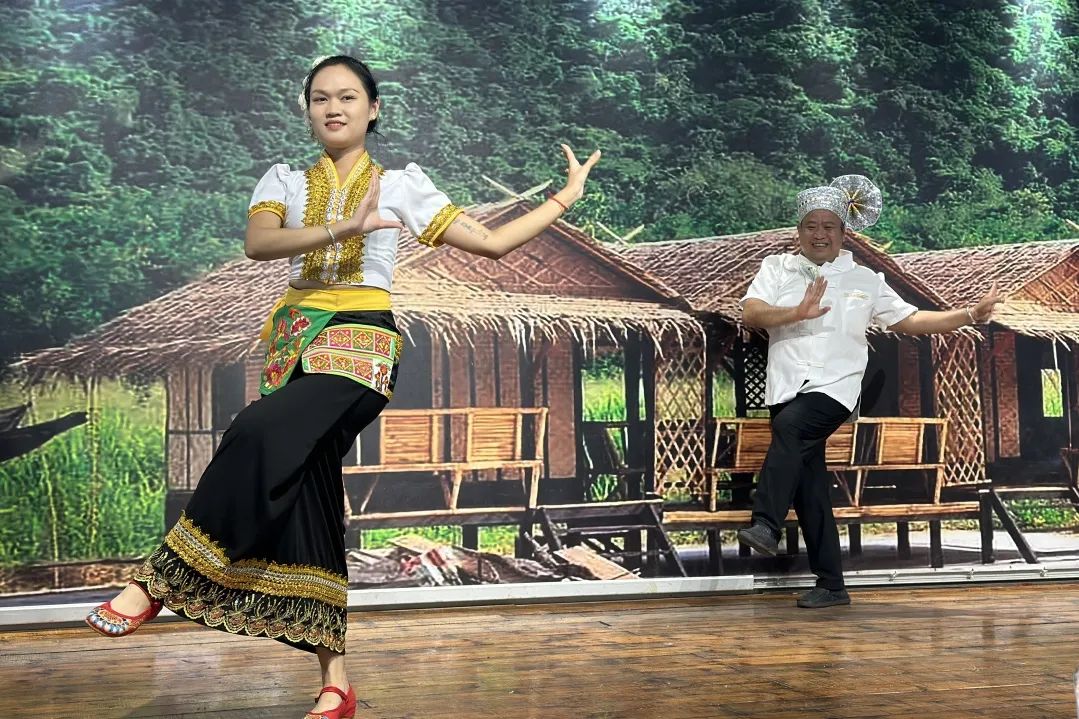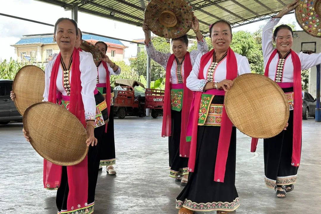 中勐村中,灵动的篾帽舞、古朴的四方舞等传统白傣舞蹈接连上演,村民们巧妙利用电饭煲改良制作工艺,既突破了传统材料的局限,又完整保留了其独特悠扬的音色。团队成员捧起乐器,与村民共同演绎,沉浸在祥和的时光里。