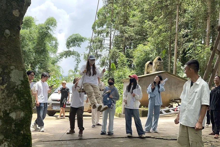 白马中寨的矻扎扎节上,团队成员参与节前准备:看着壮劳力合力宰杀祭祀用的水牛,感受分食共享的古老情谊;协助搭建祭祀草棚、特色翘板与秋千,在木制秋千上感受节日的欢乐。这个稻谷初种时的祈福节日,让大家体会到哈尼族农耕文化与民族信仰的厚重。