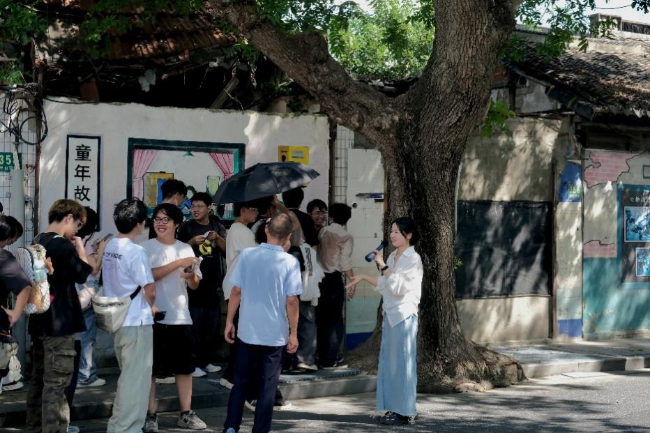 专业讲解员从园区整体规划背景切入,为同学们勾勒出园区的整体框架和发展脉络,重点围绕商户文保房的历史沿革、建筑特色展开详细讲解。在讲解过程中,讲解员和专业教师一边引导学生观察建筑的每一处细节,从门窗的雕花到墙体的纹理;一边结合历史文献,生动还原了文保房在不同时代的功能变迁,让同学们了解到这些建筑不仅是冰冷的砖石结构,更是承载着历史记忆和文化底蕴的活化石。