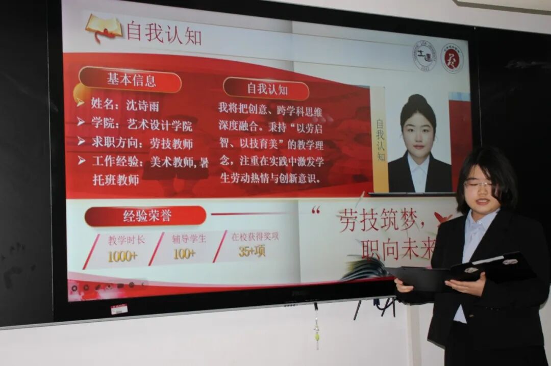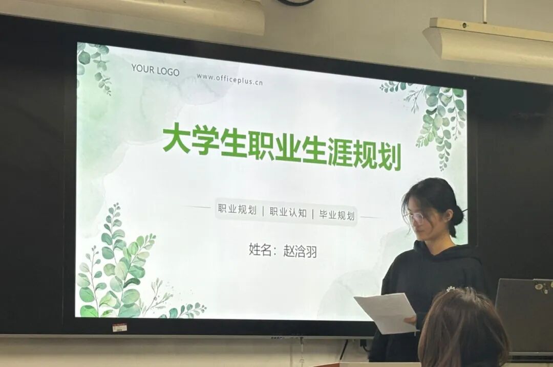 她以“牢记使命,指向未来”为主题,从行业分析、自我认知、成长行动、就业规划这四方面分享自己的职业规划方向。同时,她也提出自己的目标是成为劳动教育教师,希望自己的所学能帮助他人。