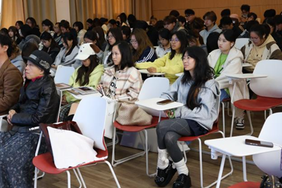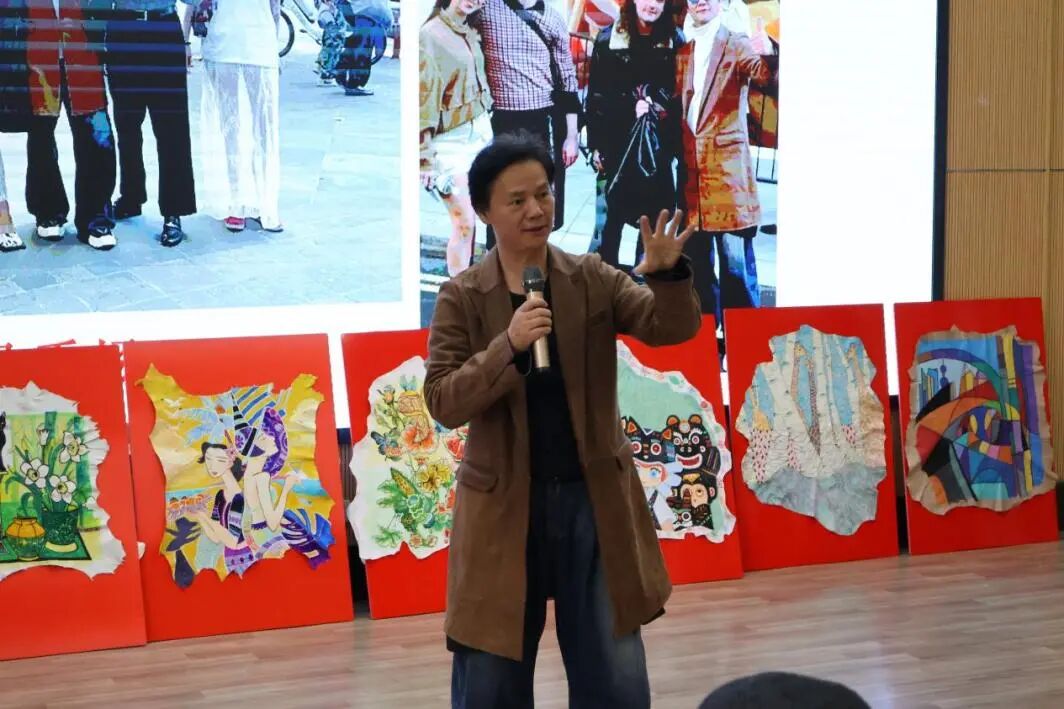 讲座伊始,朱方胜院长发表致辞,点赞皮面绘画的创新性,鼓励学生联动企业推进项目落地,比如把皮面纹样开发为文创产品等形式。同时,他提醒学生珍惜交流机会,强调手工创作与自发创新是AI无法替代的核心优势,鼓励大家以创新结合实践锻炼自我,并呼吁学生借此次交流,结合皮具专家视角和企业家经验,重新理解艺术与皮具领域的关联,探索设计教育新方向。