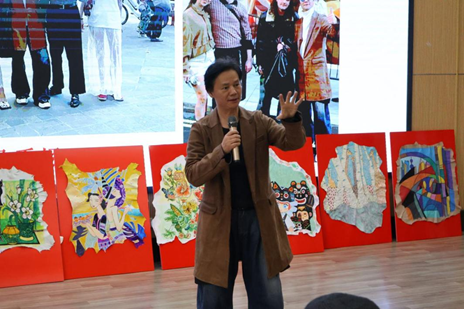 随后,陈建荣先生带来了一场兼具人文温度与实践视野的主题演讲。他提出“以皮革承载生命故事”的理念,并分享了自身身着皮衣携皮艺作品亮相伦敦时装周的经历,以实际行动诠释“皮上文明”的国际传播价值。同时,他以“动物丛林法则”作喻,鼓励同学凝聚创意,从日常观察深化皮革认知,以热爱解锁材料价值,并展示品牌皮革产品案例,让设计与产业的联结更加具象化。
