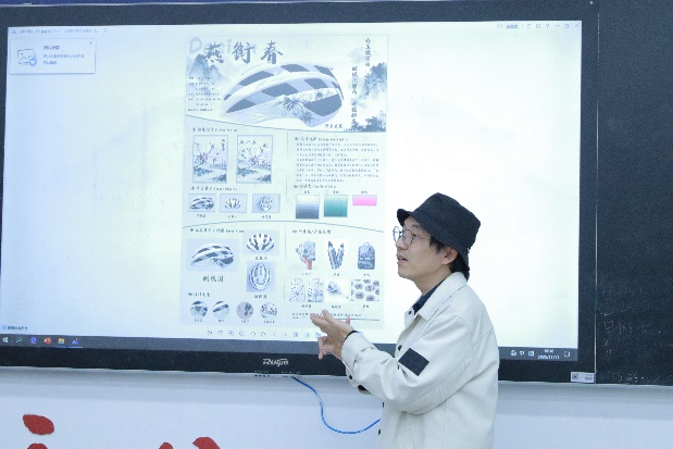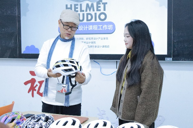 随后,朱方胜院长点评学员作品,针对不同风格的骑行头盔品牌形象设计方案,从视觉语言构建、产品落地、周边延展等角度,给予了核心设计理念指导,为同学们扩展了后续设计的思路。