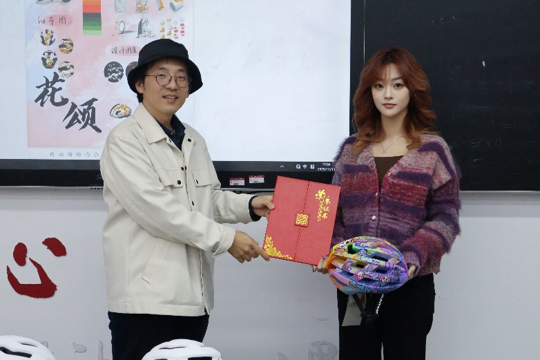 结营仪式伊始,艺术设计学院院长、博士生导师朱方胜教授发表致辞,对本次工作坊的举办成效给予高度评价与充分认可。他指出,视觉传达设计专业的实际价值在于“文创落地、成果转化”,本次工作坊以骑行头盔为设计载体,将专业知识与实际产品需求紧密结合,为学生搭建了“理论+实践”的优质平台。朱方胜院长鼓励全体学生以此次活动为契机,进一步开阔设计眼界,更新前沿认知,在未来的学习中持续深耕专业,将创意设计转化为具备市场价值的文创成果,助力专业高质量发展。