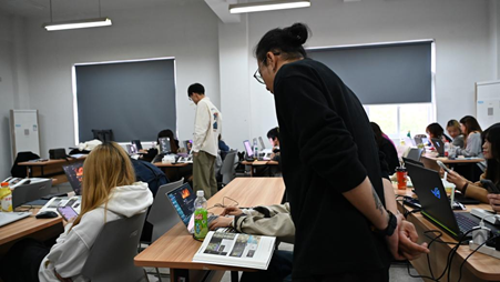 在AIGC视觉生成工具环节,讲师带领学生“正确认识AI视觉生成技术”,详解工具核心逻辑与进阶使用指南,通过“文本-图像”实时生成演示。随后的实战演练中,同学们亲手操作工具完成创意图像生成,在实践中掌握提示词设计技巧,体验从创意构思到视觉呈现的高效转化。