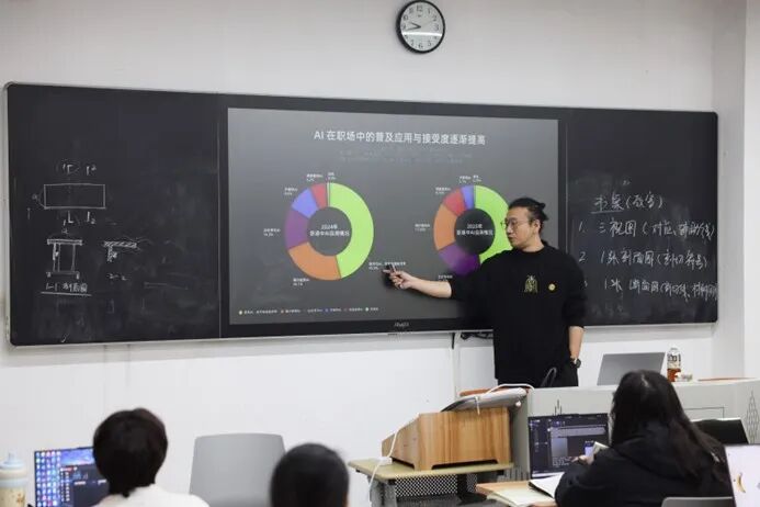 在影视视频内容创作专题环节,讲师聚焦AIGC对视频创作的全流程智能化应用,涵盖从前期策划到后期制作的完整环节视频。同时,现场演示了如何通过自然语言工具生成逻辑完整的视频剧本与标准化脚本,通过“脚本+视觉+音频”的全链条技术拆解,帮助学生构建完整的AIGC应用知识框架,让同学们深刻感受到AI在打破传统影视创作效率瓶颈、降低制作成本方面的强大优势。